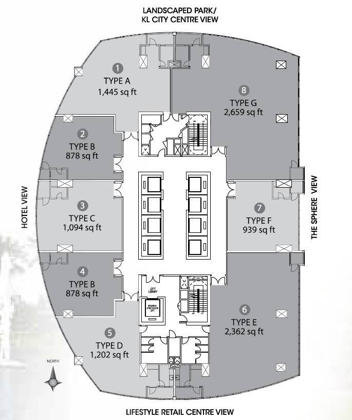 - Office spaces from 878sf to 13,037sf